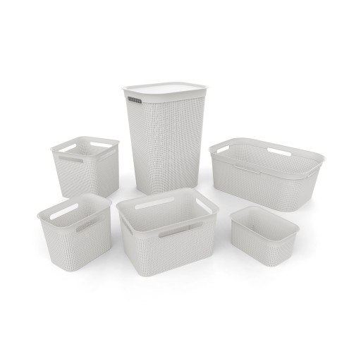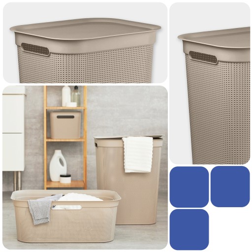 Nieprzezroczysty pojemnik z otworami wentylacyjnymi to estetyczny i funkcjonalny sposób na przechowywanie brudnych ubrań, bielizny pościelowej oraz ręczników.