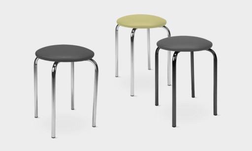 Nowoczesny, bardzo popularny, solidny produkt renomowanego polskiego producenta - firmy Nowy Styl. Siedzisko tapicerowane standardowo skajem, łatwe do utrzymania w czystości, łatwozmywalne. Stelaż metalowy malowany proszkowo na kolor czarny.