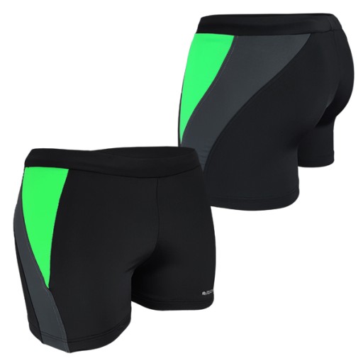 Męskie kąpielówki, które dzięki zastosowaniu technologii HighCLO posiadają zwiększoną odporność na działanie chloru. Wykonane z elastycznego i szybkoschnącego poliestru w całości wzbogaconego jonami srebra Sanitized.