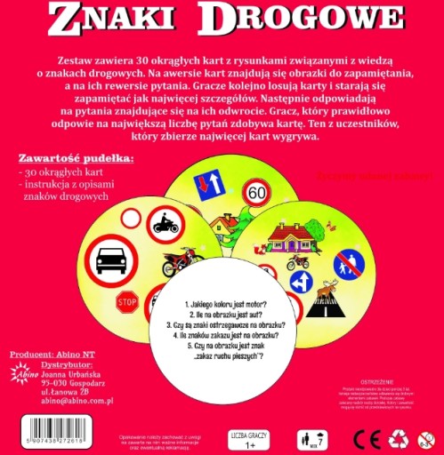 Gra zawiera 30 okrągłych kart z rysunkami związanymi z wiedzą o znakach drogowych. Gracze kolejno losują karty i starają się zapamiętać jak najwięcej szczegółów a następnie odpowiadają na pytania znajdujące się na odwrocie karty. Gracz który odpowie na najwięcej pytań zdobywa kartę.