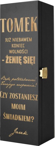 Przedmiotem aukcji jest elegancka drewniana skrzynka w czarnym kolorze z Twoim spersonalizowanym grawerem z prośbą o świadkowanie.