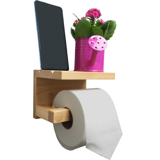 UCHWYT NA PAPIER TOALETOWY DREWNIANY Z PÓŁKĄ