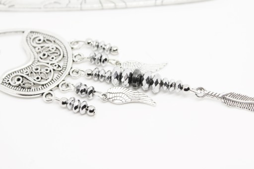 Elegancka zakładka do książki z łapaczem snów z dodatkiem czarnego i srebrnego hematytu.