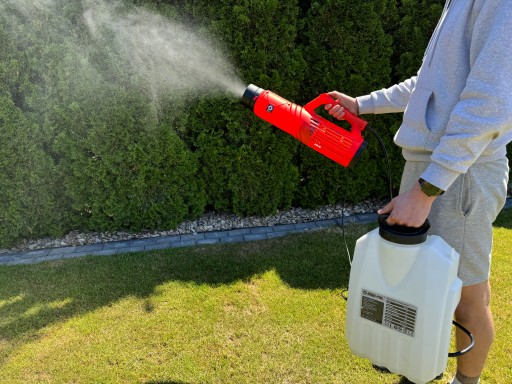 ⭐ Urządzenie posiada wbudowaną dyszę z możliwość regulacji rozproszenia strumienia - od delikatnej mgiełki do silnego strumienia jak w opryskiwaczu spalinowym.