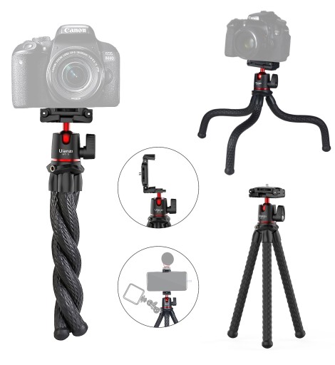 To innowacyjny statyw wyposażony w elastyczne nóżki, które możesz opleść np. wokół gałęzi lub poręczy i stworzyć swoje stanowisko pracy gdziekolwiek przyjdzie Ci nagrywać lub fotografować. Urządzenie wyposażono w męski gwint 1/4" umożliwiający montaż aparatu lub kamery sportowej, a także zintegrowany, rozkładany uchwyt kompatybilny ze smartfonami o szerokości od 60 do 95 mm. Jego maksymalny udźwig to aż 2 kg. Dodatkowy gwint 1/4" oraz gniazdo zimnej stopki pozwolą połączyć statyw z dodatkowymi akcesoriami. Kulowa głowica umożliwi pracę z aparatem lub smartfonem zarówno w pionie, jak i w poziomie. To idealny wybór dla vlogerów, podróżników, a także uczestników wideokonferencji i e-lekcji.
