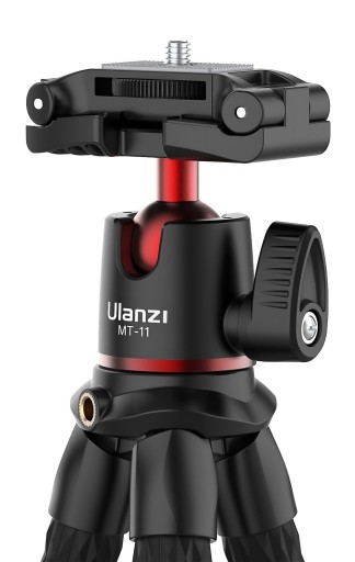 Elastyczny statyw Ulanzi MT-11 wyposażono w małą głowicę kulową, którą wieńczy płytka montażowa kompatybilna z gwintem 1/4". W trosce o bezpieczeństwo Twojego sprzętu wykończono ją antypoślizgową okładziną zapewniającą lepszą przyczepność. Zaokrąglone wycięcie pozwoli ustawić zainstalowane na głowicy urządzenie zarówno w pionie, jak i w poziomie.