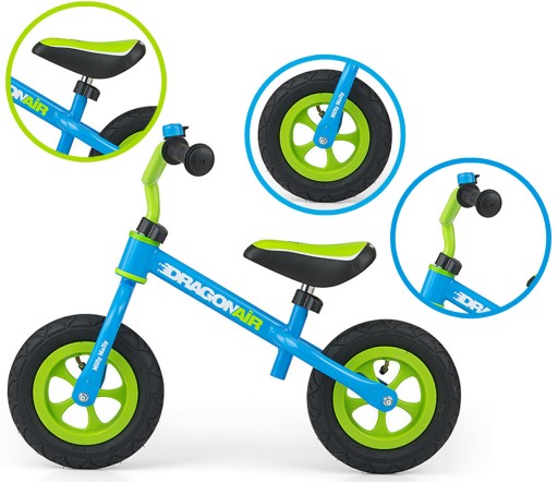 Rowerek DRAGON AIR został wyposażony w szerokie, pompowane opony które zapewnią stabilność i bezpieczeństwo – zatem Młody rowerzysta z łatwością utrzyma równowagę. Bieżnikowane opony sprawdzą się na wszystkich powierzchniach.