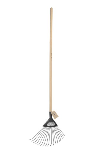 Grabie z drutu hartowanego do zgrabiania liści. Lekkie, poręczne narzędzie.