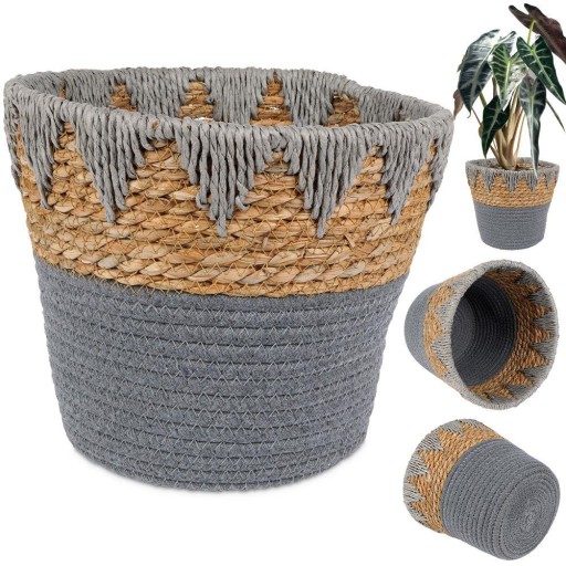 ✅ WYTRZYMAŁA - Wykonana z plecionej wikliny oraz bawełny w szarym kolorze. Dekor wykonany z papieru w kolorze szarym.