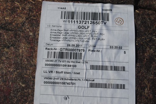 ОБИВКА БОКОВИН ПЕРЕДНЕЙ ДВЕРИ GOLF VI GTD GTI HB 3D