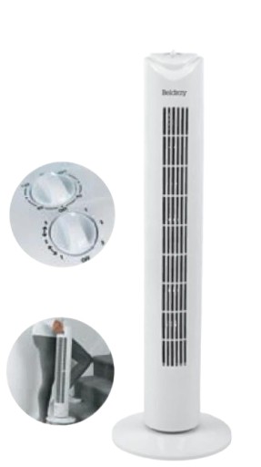- Wentylator w obudowie typu wieza o wys. 81 cm idealnie ochlodzi pomieszczenia, a funkcja 2-godzinnego zegara utrzyma komfortowa temperature przez cały dzien.