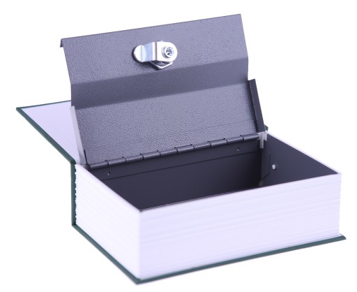 Kasetka, sejf na pieniądze, biżuterię, dokumenty oraz inne kosztowności. Postawiona między innymi książkami na półce stanowi doskonały kamuflaż.
