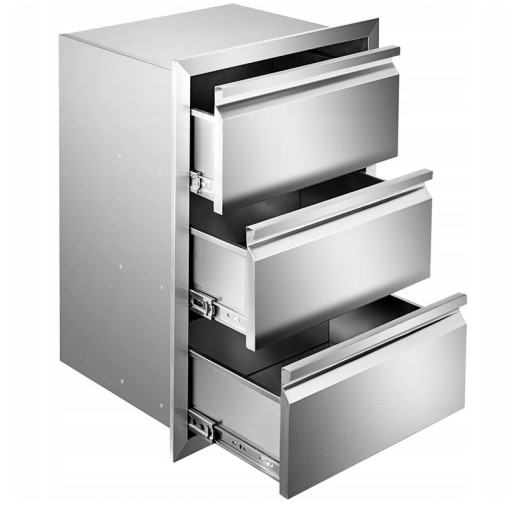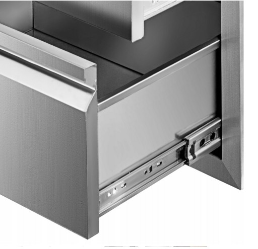 Szuflady ze stali nierdzewnej są wykonane z wysokiej jakości stali nierdzewnej, dobrze się czyszczą bez śladów i smug, jednoczęściowa konstrukcja ramy zapewnia trwałość.