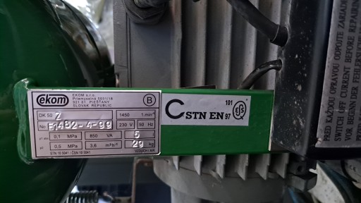 Używany, sprawny kompresor bezolejowy EKOM, model DK-50. Posiada obudowę z wyciszeniem. Kompresor jest przeznaczony do napędu sprzętu i urządzeń stomatologicznych.