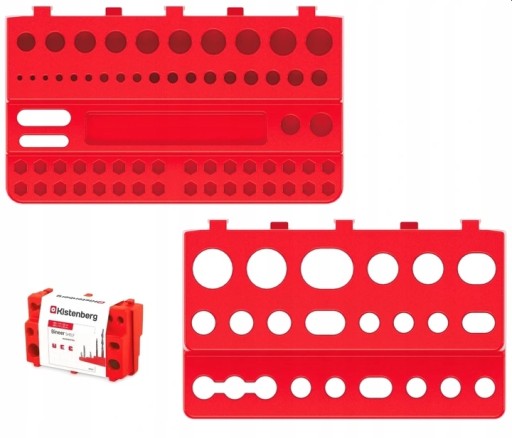 Komplet składający się z dwóch półek na narzędzia do tablicy montażowej marki Kistenberg.