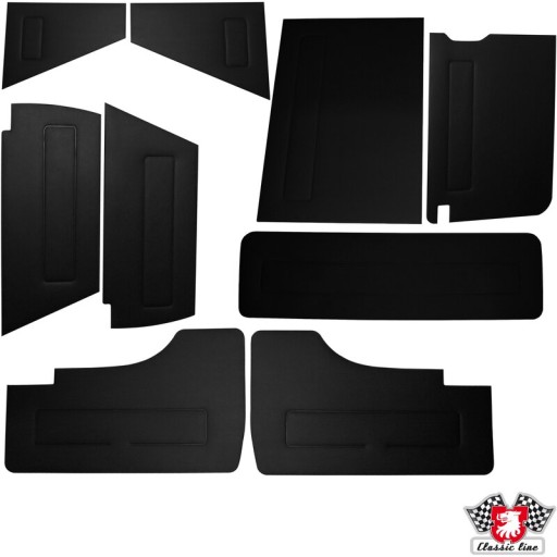 VW Transporter T3 Zestaw drzwi wewnętrznych i paneli bocznych, 9 sztuk, czarny NUMERY OE: AC823500 Producentem części jest duńska firma JP GROUP Automotive. Jest to firma produkująca zarówno części zamienne na rynek wtórny jak i pierwszy montaż. Dodatkowo swoją ofertę poszerzyła o linię produktów CLASSIC LINE dzięki czemu świetnie wpisuje się w rynek samochodów zabytkowych i klasycznych takich marek jak VOLKSWAGEN, MERCEDES-BENZ, VOLVO oraz PORSCHE.