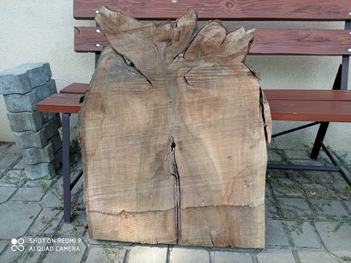 3 - 7 zdjęcie płyta nieheblowana o wymiarach 70cm x 58cm x 6,2cm ( kawałek płyty przeszlifowany papierem i posmarowany olejem lnianym, żeby pokazać ten piękny słój ) grubość 6,2 cm mierzona w miejscu wcięcia przez piłę traka 6 zdjęcie