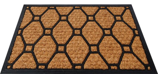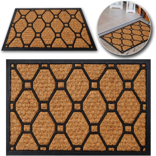 - Wycieraczka wykonana z naturalnych włókien kokosowych i gumy wysokiej jakości, zapewniającej właściwości antypoślizgowe.