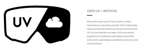 Tripout Racer został wykonany w technologii bezramkowej. W modelu Racer zastosowano szybkę cylindryczną, która jest charakterystyczna dla klasycznych gogli jednak w połączeniu z technologią bezramkową gogle prezentują się naprawdę efektownie. Szybka montowana jest na magnesach, co znacznie usprawnia jej wymianę na inną. Pasek wyposażony jest w silikonowe wstawki zapobiegające zsuwaniu się gogli z kasku. Wszystkie gogle rozmiarem pasują do form atestowanych kasków dostępnych na rynku. Wszystkie modele posiadają rozmiar uniwersalny, pasują na dorosła osobę i są unisex. W zestawie jest twarde etui zamykane na zamek błyskawiczny!
