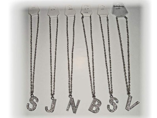 KOMPLET NASZYJNIK ŁAŃCUSZEK WISIOREK Z CYRKONIAMI Motyw Litery