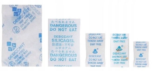 - Po umieszczeniu osuszacza w postaci saszetek żelu krzemionkowego w swoich produktach, natychmiast je zamknij.