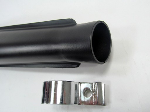 W zestawie chromowana obejma na łączenie z kolankiem.