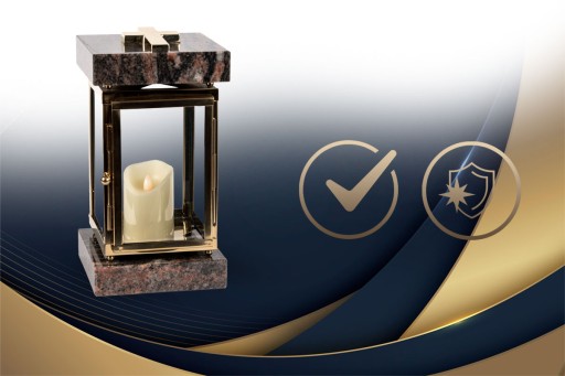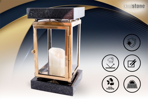 Ekskluzywny lampion nagrobny kwadratowy marki Idealstone, wykonany z naturalnych materiałów - kamień i stal nierdzewna. Trwały i elegancki.