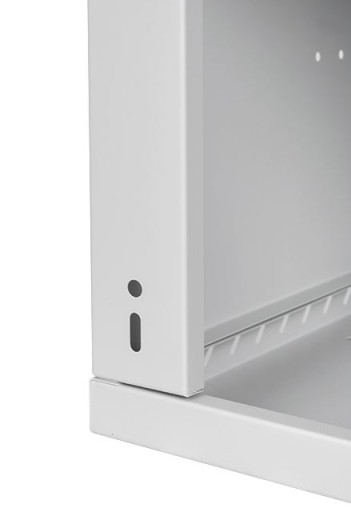 Otwory montażowe w tylnej części konstrukcji umożliwiają powieszenie szafy za pomocą kołków rozporowych. Istnieje również możliwość powieszenia szafy na hakach, w celu łatwego montażu/ demontażu.