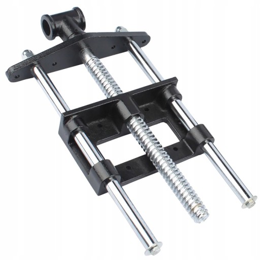 Solidna płyta z żeliwa ciągliwego montowana jest do spodu blatu. Dwie stalowe prowadnice oraz gruba śruba trapezowa umożliwiają płynną regulację i równomierne dociskanie. Pierwszą powierzchnię zaciskową stanowi krawędź stołu, a druga montowana jest na przedniej szczęce imadła.