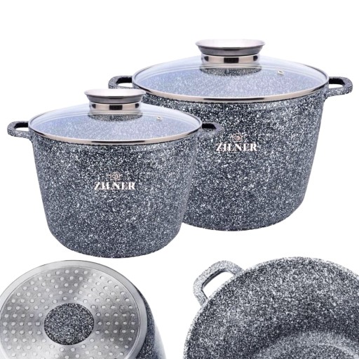 Wysokiej jakości zestaw 2 wysokich garnków marmurowych 10.2L + 6.2L ze szklaną pokrywą.