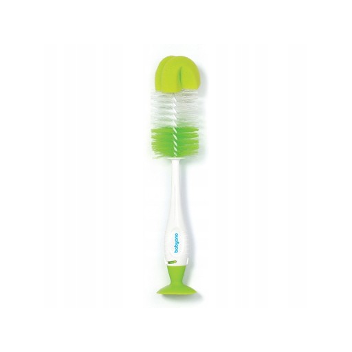 Miękka gąbka, znajdująca się na samej górze szczotki, wpasowuje się do różnego kształtu butelek. Zarówno gąbka, jak i miękkie włosie szczotki, pozwalają na dotarcie do wszystkich zakamarków butelki! Mała szczotka umieszczona w uchwycie rączki służy do czyszczenia smoczków.