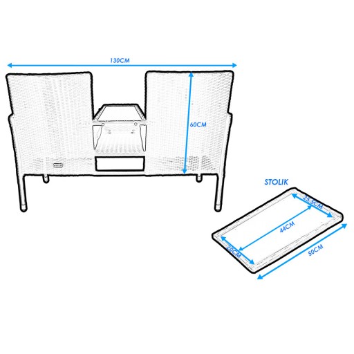 - Dwuosobowa kanapa rattanowa,