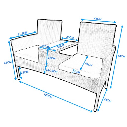 Dzięki połączeniu kanapy ze stolikiem oraz niewielkim rozmiarom, mebel świetnie nadaje się na mały balkon lub nieduży taras.