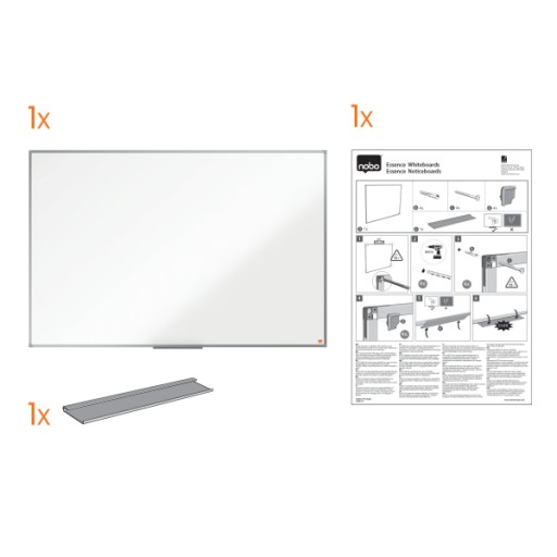 - Stalowa magnetyczna tablica suchościeralna z ramą z anodowanego aluminium i półką na suchościeralne markery.