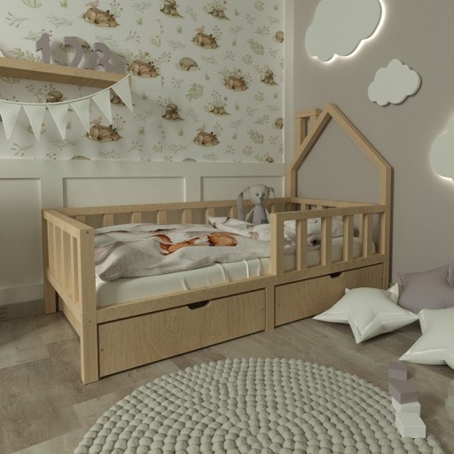Dodatkowo, w zestawie znajduje się również stelaż sprężynujący pod materac, który zapewni dodatkowy komfort snu. Łóżko nie jest pomalowane więc możesz cieszyć się naturalnym drewnem u siebie w domu. Zamów już dziś i ciesz się komfortowym snem Twojego dziecka.