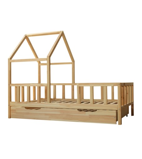 LEON 2 to wzbogacona wersja łóżka pojedynczego o nazwie LEON. Łóżko nie jest malowane. W całości wykonane jest z naturalnego drewna. Posiada ono bardziej rozbudowany daszek, który nadaje mu większego rozmiaru i masywniejszego wyglądu. W cenie łóżka znajduje się również stelaż sprężynujący pod materac.