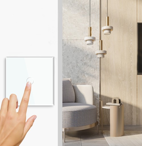 ✔️ Dotykowy panel ze szkła hartowanego z delikatnym podświetleniem sprawiają, że włącznik wpasuje się w każde wnętrze.