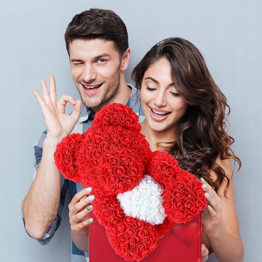 Walentynki coraz bliżej. Okaż swoje uczucia ukochanej osobie i podaruj jej niezwykły prezent! Miś z róż wyraża więcej niż 1000 słów. Wręczony partnerce z pewnością wywoła ogromny uśmiech na jej twarzy. Ręcznie wykonany z ponad 650 kwiatów prezentuje się niezwykle efektownie. Postawiony na biurku lub regale przez długi czas będzie przypominał o Twojej miłości.