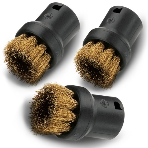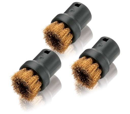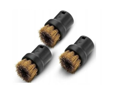 Szczotka KARCHER 2.863-061.0. Zestaw trzech szczotek okrągłych z mosiężną szczeciną do usuwania uporczywych, zaschniętych zabrudzeń. Doskonałe do niewrażliwych powierzchni. Uniwersalne pasujące do większości urządzeń parowych.