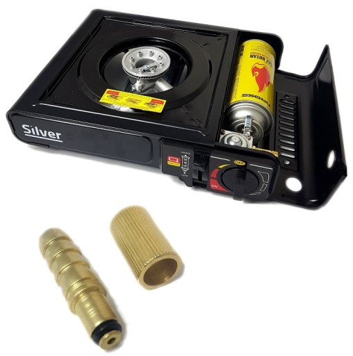 - Funkcja 2w1 - dwudrożny zawór - zasilana standardowymi nabojami gazowymi (kartuszami) lub z butli turystycznej.