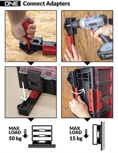 Uchwyty Z257004PG001 przeznaczone są do mocowania organizerów QS ONE XL i 2XL na ścianach, drzwiach busów, w warsztacie, garażu czy nawet na innych skrzyniach. Pozwalają również na mocowanie wszystkich skrzyń z linii ONE do podłoża. Stwarza to szereg nowych możliwości przechowywania i transportowania większych walizek systemu Qbrick ONE.