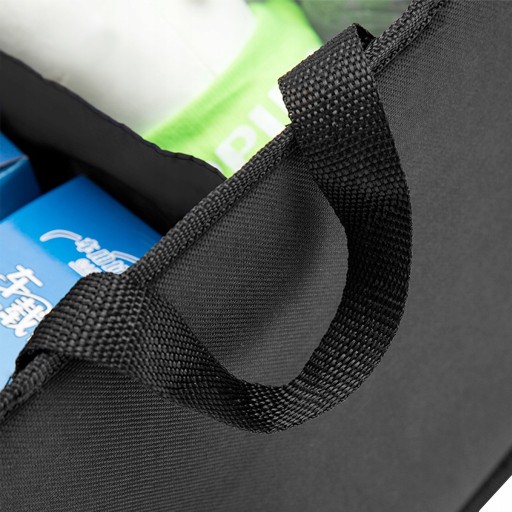 - UCHWYTY DO PRZENOSZENIA– niewątpliwą zaletą, jaką posiada ten praktyczny organizer do bagażnika, są uchwyty do przenoszenia. Jest to bardzo wygodne zastosowanie, gdyż organizer zamienia się wówczas w praktyczną torbę (nie trzeba rzeczy wypakowywać, opuszczając samochód, tylko można zabrać je w organizerze).