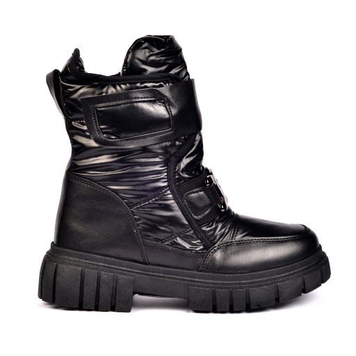 ŚNIEGOWCE DAMSKIE CZARNE KOZAKI ZIMOWE KLAMRA