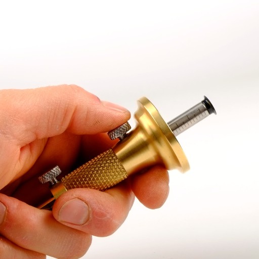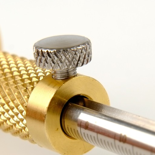 Korpus znacznika wykonany jest z mosiądzu i wyposażony w dwie śruby blokujące. Znacznik jest ciężki i dobrze leży w ręce umożliwiając precyzyjną pracę.