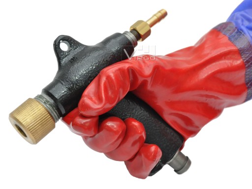 Urządzenie umożliwia oczyszczanie i nadawanie odpowiedniej struktury obrabianym powierzchniom metodą strumieniowo-ścierną za pomocą różnego rodzaju ścierniwa. Głównym elementem takiej piaskarki jest zbiornik ciśnieniowy wyposażony w zawór grzybkowy samoczynnie zamykający zbiornik po podaniu sprężonego powietrza. Wyposażony jest on w armaturę umożliwiającą precyzyjne ustalenie proporcji sprężonego powietrza do ścierniwa w strumieniu roboczym. Włączanie i wyłączanie piaskarki odbywa się przy użyciu wyłącznika nożnego. Standardowo zamontowany jest reduktor ciśnienia z odwadniaczem.