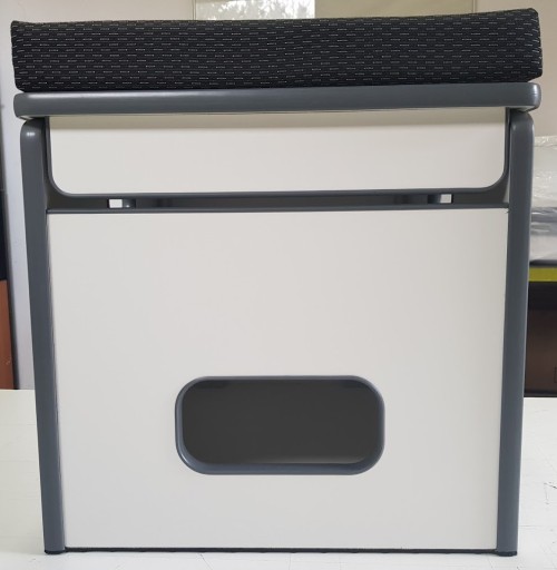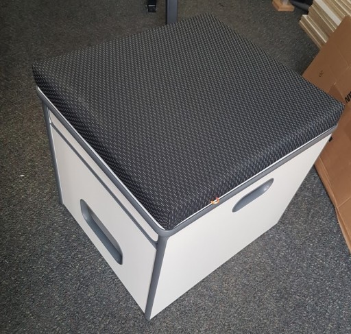 Można użyć jej jako stołka, siedziska. Do siadania dołączona jest poduszka tapicerowana wysokiej jakości tkaniną do tapicerek samochodowych. Można użyć mebla także jako podnóżka.