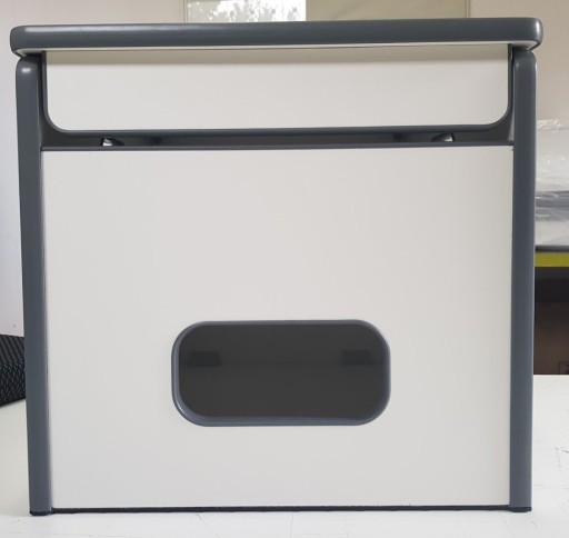 Szafka w kolorze białym z szarymi wykończeniami z toaletą przenośną Thetford
