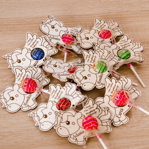Przedmiotem aukcji jest Jednorożec z personalizacją na lizaka.