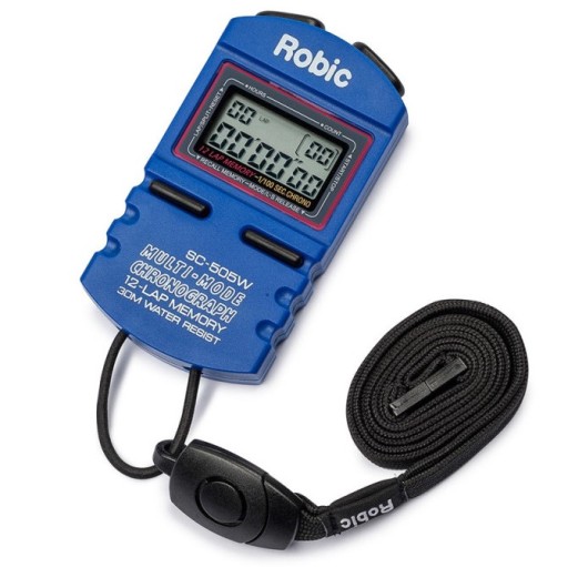 Podstawowy stoper firmy Robic, z pamięcią 12 czasów i dokładnością pomiaru do 1/1000 sekundy.