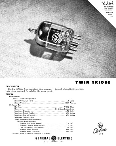 Oferuję Państwu fabrycznie nową podwójną triodę typu 5670 produkcji amerykańskiej firmy National Electronics.